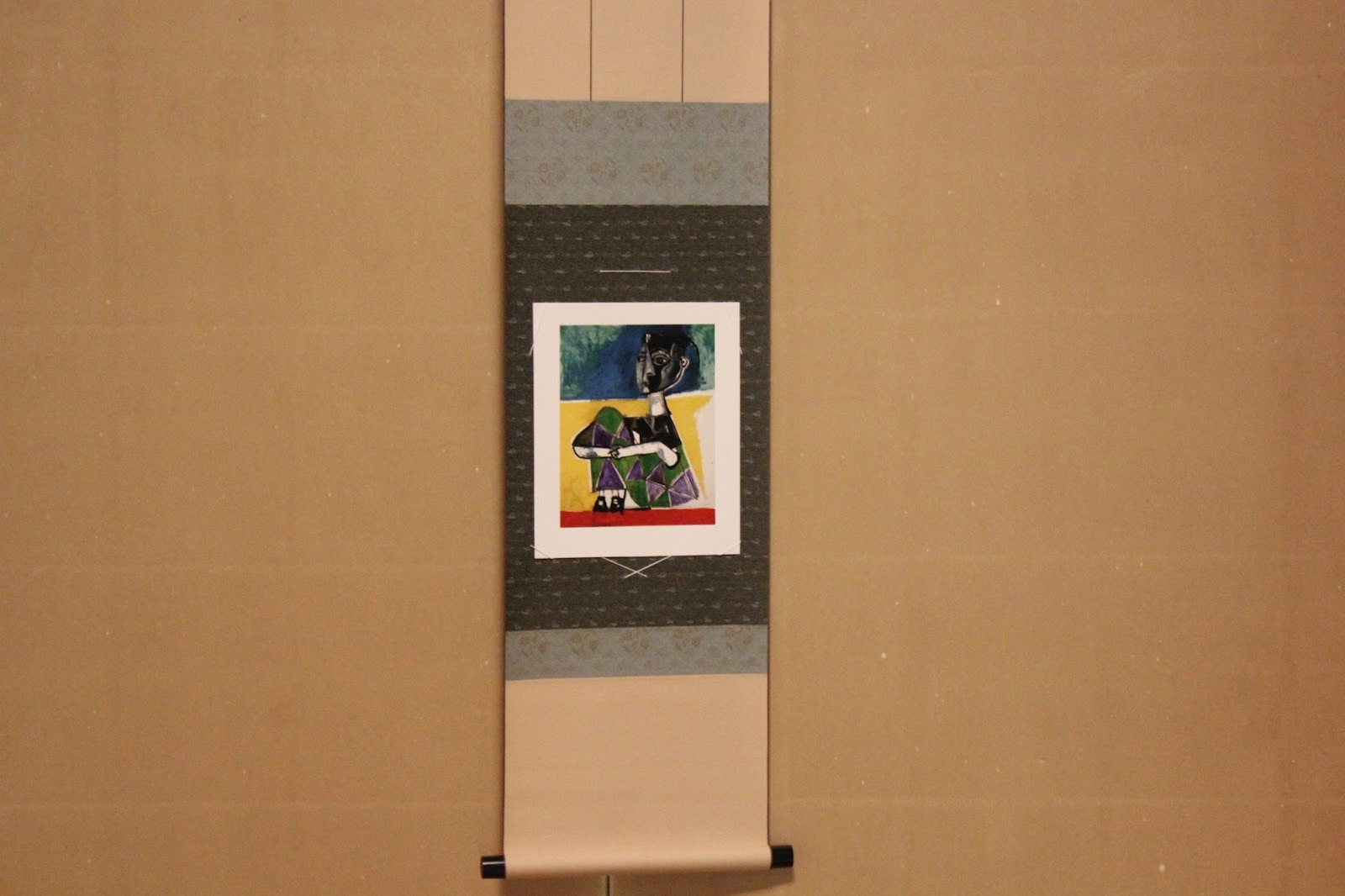 日本画ではなさそうな、目を凝らして見たくなるような絵が掛けられている。