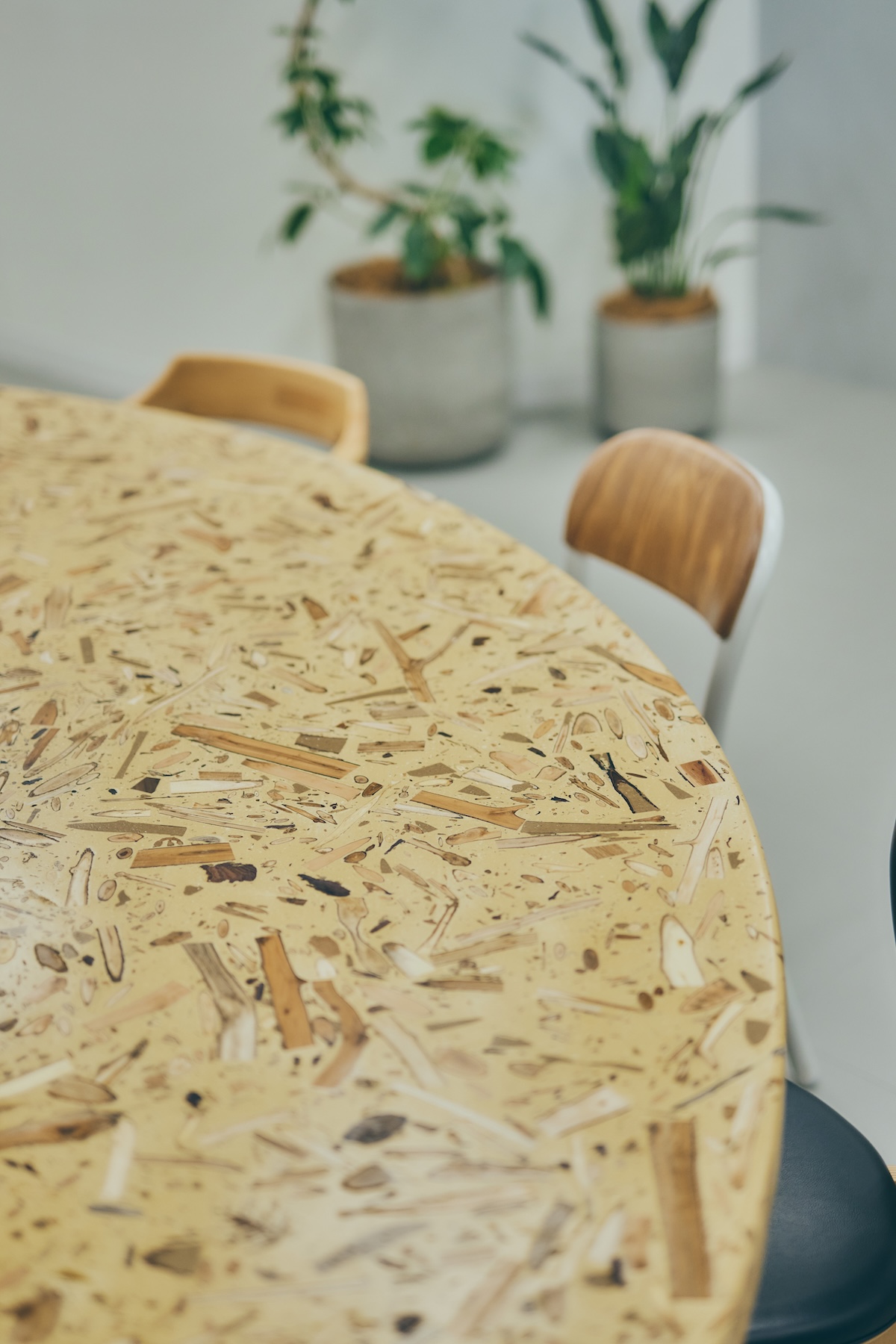 ソファの座面もテーブルトップも、当然のように循環する素材を活用 写真:タケシタ トモヒロ