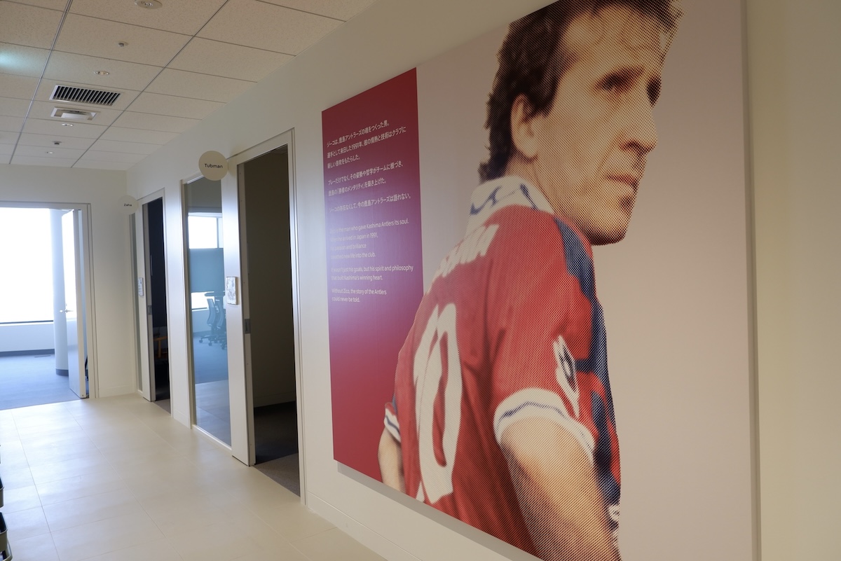 ジーコが訪問した暁には、エントランス近くにある大きなボードにサインを入れてもらう予定だという。そんな和やかな雑談からメルカリのオフィス訪問が始まった。