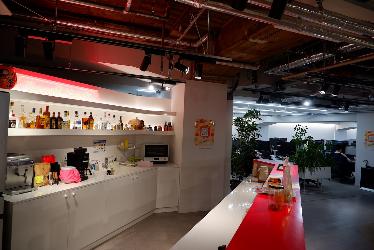 マークさん「ハードウェア的な仕掛けで言うと、やはりバーですね。普通のオフィスだと給湯室やキッチンという名前で、最初はうちもキッチンだったんですが、なんかそうじゃないよねと。酒を飲んで仲良くなるみたいなところは古いかもしれないですけど、そういう懇親会をするので、うちってバーだよねと。