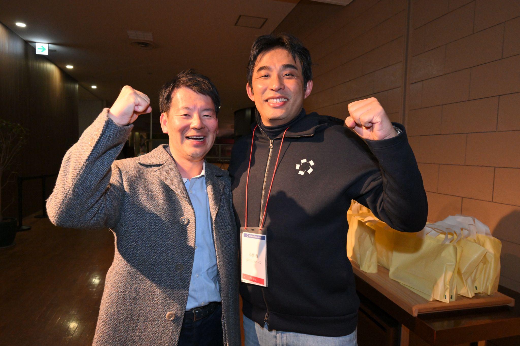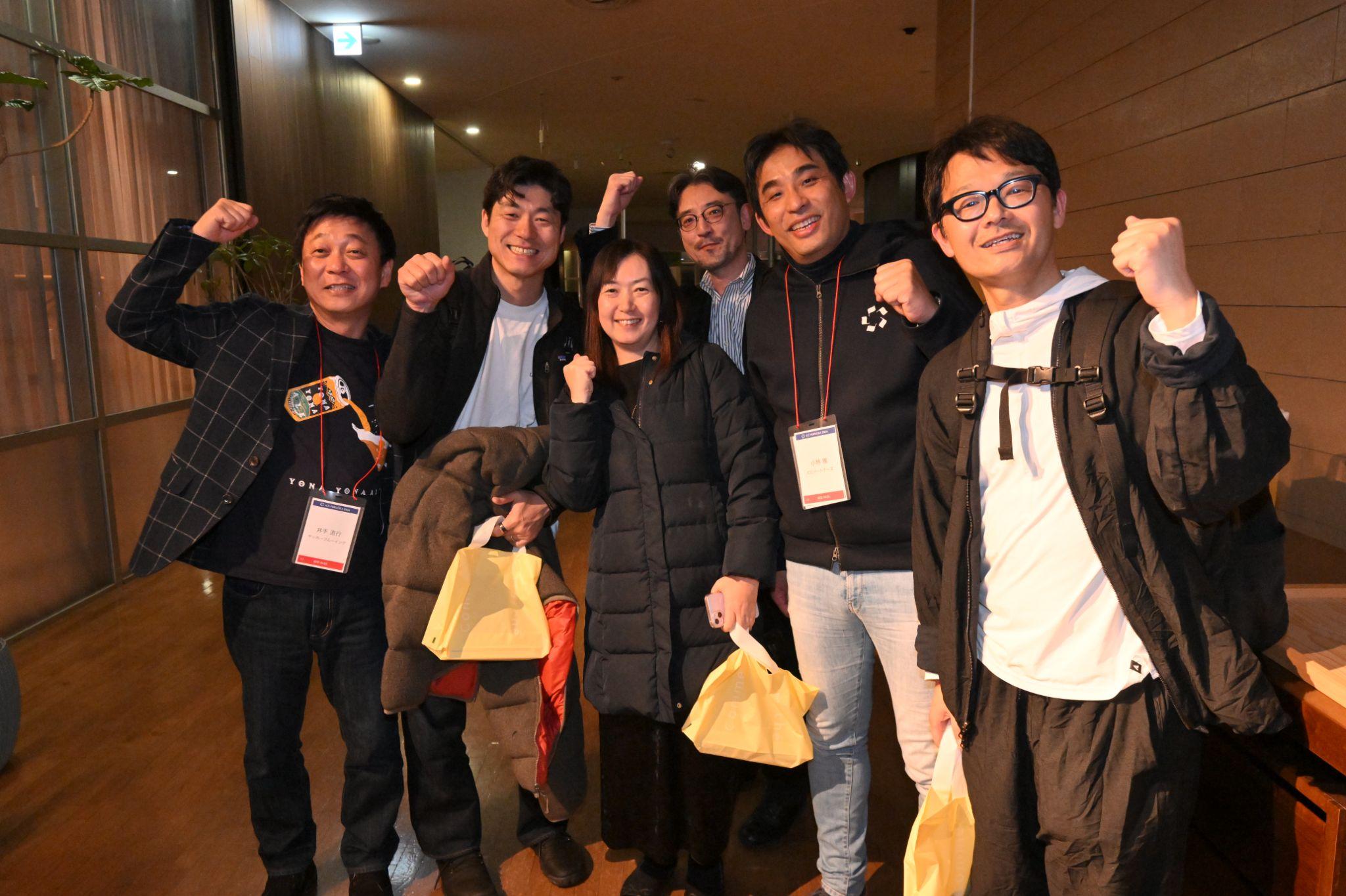 帰っていく参加者たちにお土産を手渡すと、自然と記念撮影大会になった。この日を忘れたくないという気持ちと、小林さん、ICCサミットという場への共感や感謝が、言葉にせずとも伝わってくるような温かな夜だった。