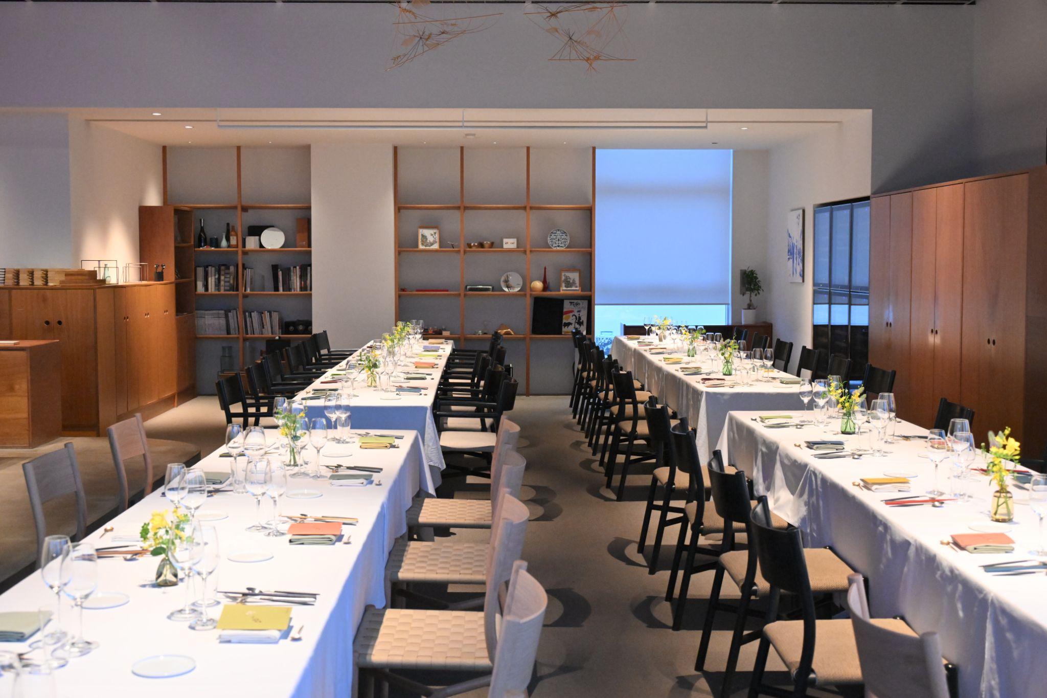 スクリーンにはICC10周年のロゴが映し出され、特別な雰囲気を演出している。着席したゲストたちはメニューを手に取り、早速メッセージを読んでいる。
