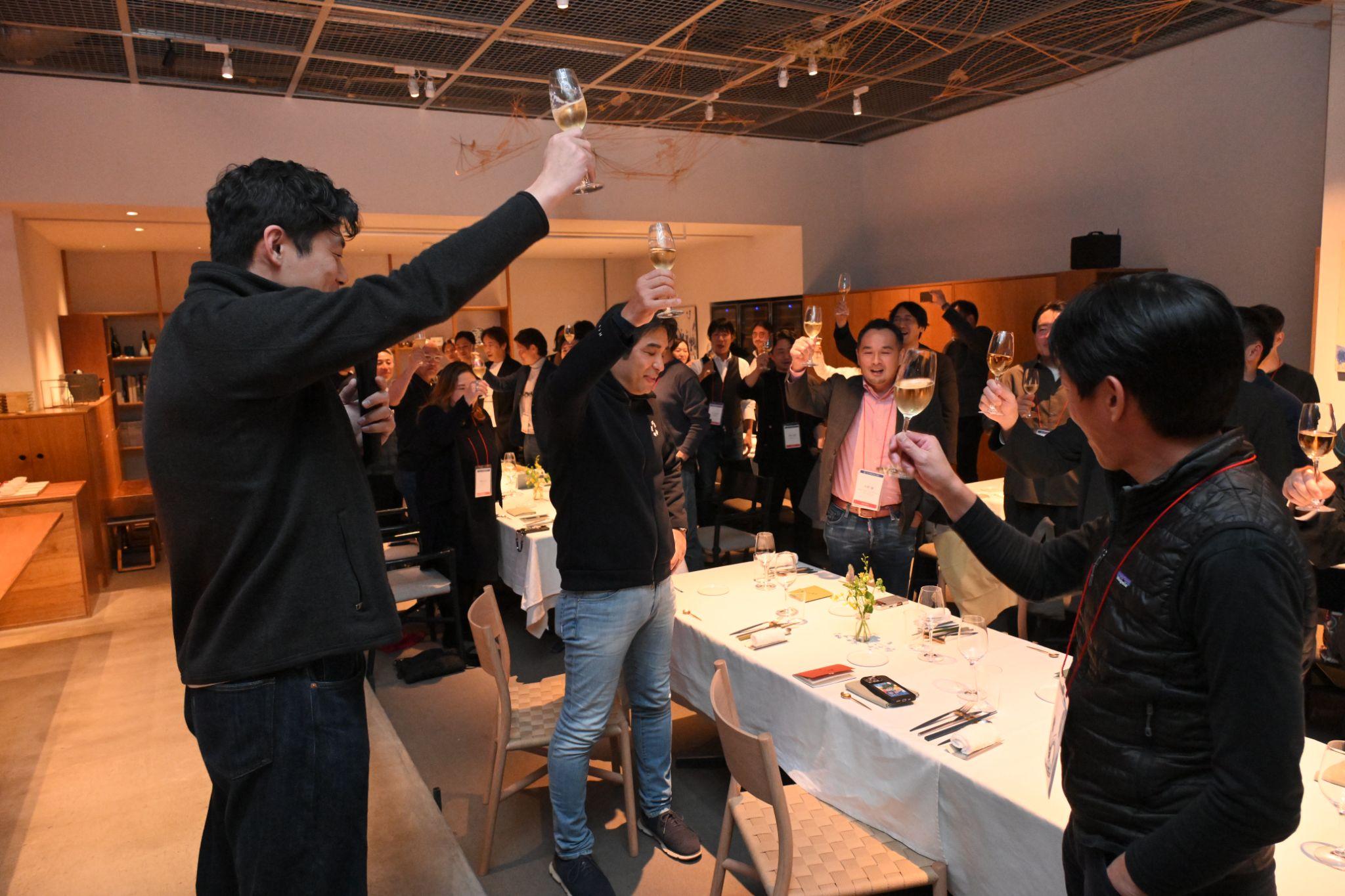 続いて、小林さんの盟友のUntroD Capital Japan永田さんが乾杯の挨拶をした。ここに集まった人たちの気持ちを代弁するような、温かくも、自分や仲間を鼓舞するような永田さんらしい言葉で語られた。